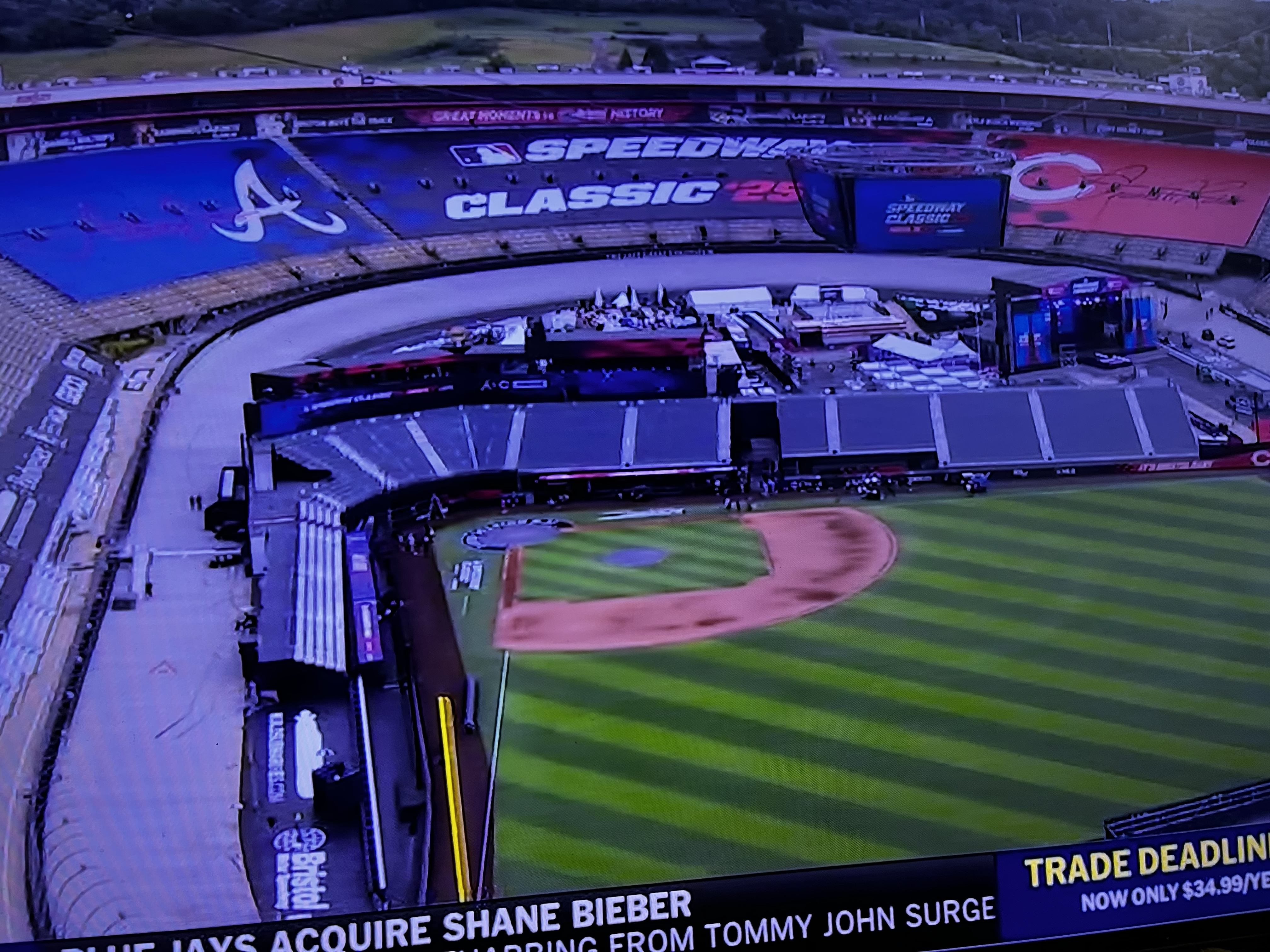 NASCAR has held races in some interesting places…on the beach, on dirt tracks, and on a football field. Next year, they will add a military base and airplane tarmac to the list. Major League Baseball is following the example and on Saturday night will hold a game between the Atlanta Braves and Cincinnati Reds at…